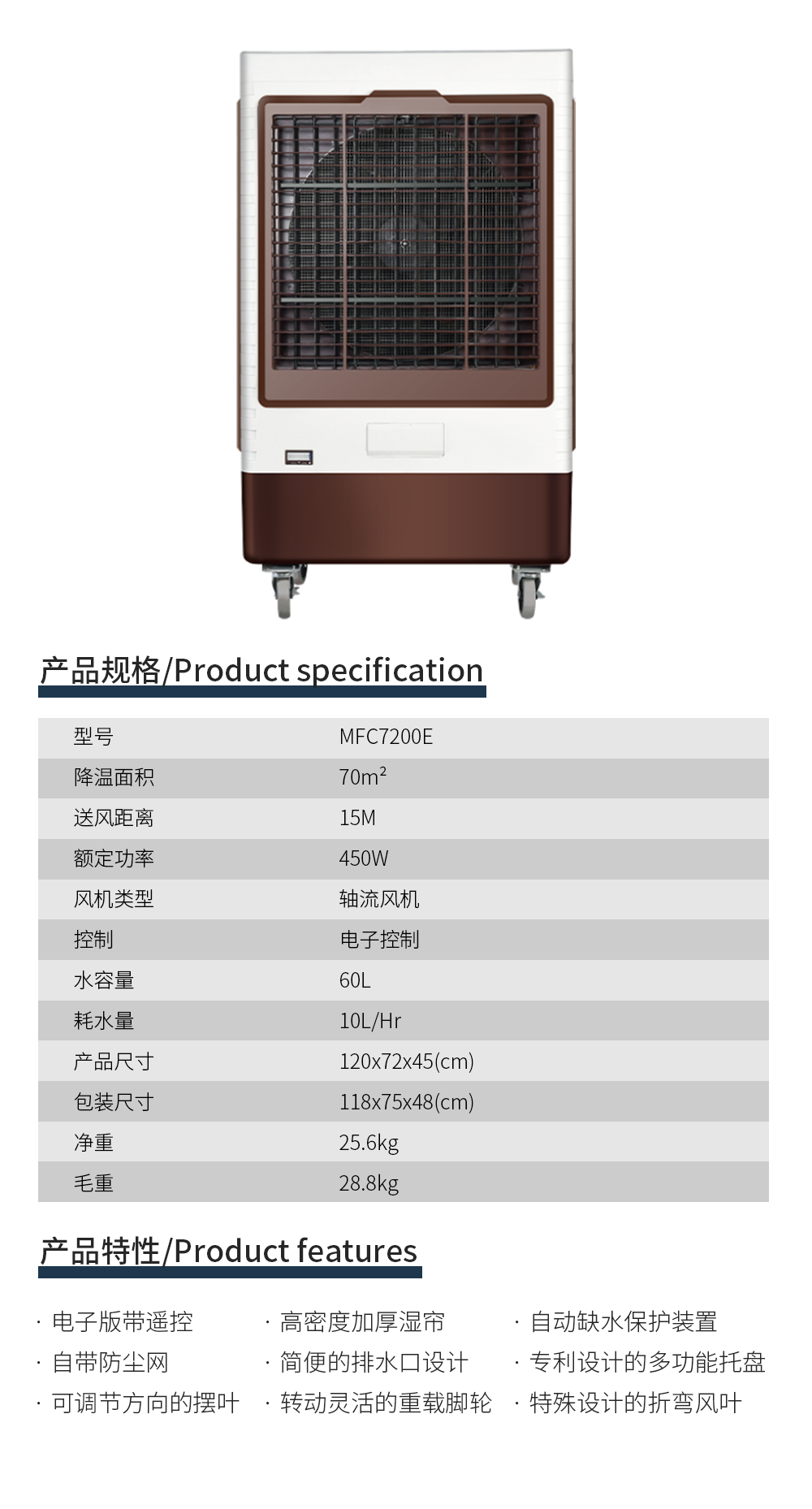 雷豹MFC7200E是由表面積很大的特種紙質(zhì)波紋蜂蜜窩狀濕簾,高效節(jié)能風(fēng)機(jī),水循環(huán)系統(tǒng),浮球閥補(bǔ)水裝置,機(jī)殼及電器元件等組成的機(jī)器,具有制冷效果。當(dāng)風(fēng)機(jī)運(yùn)行時(shí)家用腔內(nèi)產(chǎn)生負(fù)壓、使機(jī)外空氣通過吸水性很強(qiáng)的濕簾進(jìn)入腔內(nèi),濕簾上的水在絕熱狀態(tài)下蒸發(fā),帶走大量潛熱,凈化、冷卻增氧的冷氣被風(fēng)機(jī)送入車間,通過不斷對(duì)流,從而使廠房和車間達(dá)到制冷的效果。