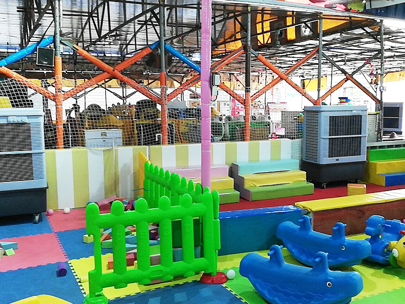 夏日來臨,游樂場里氣溫炎熱難耐,客戶要求保持空氣新鮮的同時,快速降溫,讓整個游樂場處在一個涼爽的氣溫里,我們的解決方案是放置多臺雷豹MFC18000移動冷風機,游樂場進行整體的降溫,這樣不僅可以保持空氣的清新還可以達到尋思降溫的效果,投入量小,安裝方便,不會影響小朋友們玩耍。